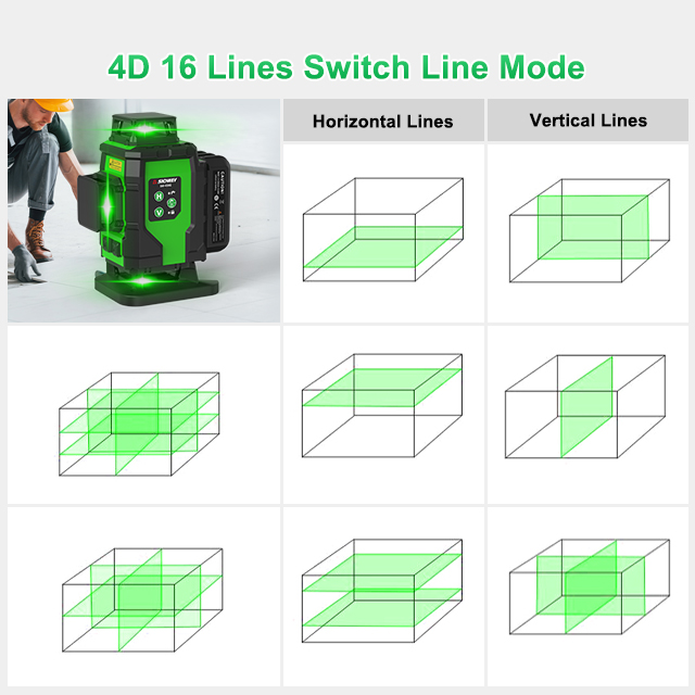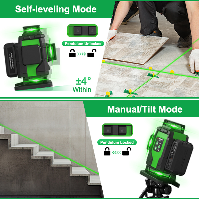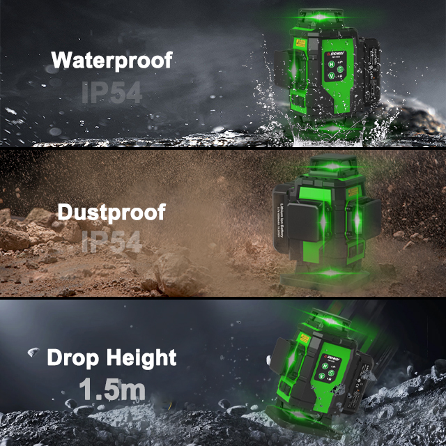 Precise laser lines for quick, accurate leveling on any site.